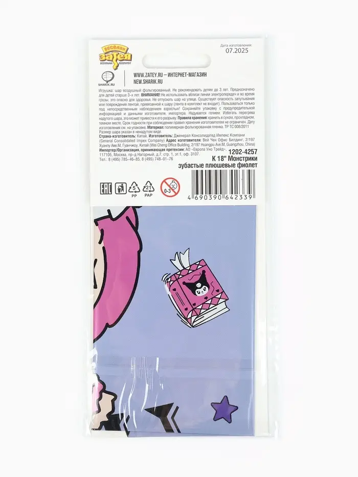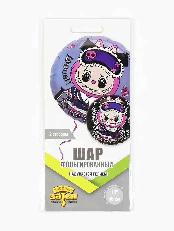 Воздушный шар фольгированный 18" круг "Монстрики зубастые фиолетовые" 2 ст., инд.уп.