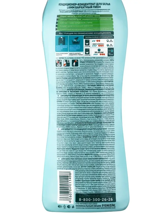 Кондиционер для белья LAMM Бархатный пион, 910 мл