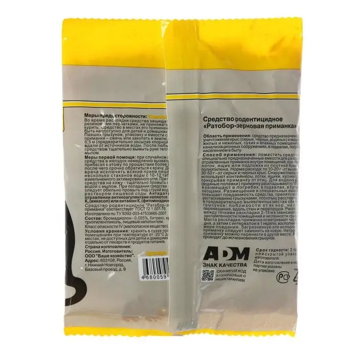 Универсальная приманка для уничтожения мышей и крыс. Основу составляет зерно пшеницы с добавлением кукурузы, что значительно повышает привлекательность приманки для грызунов.