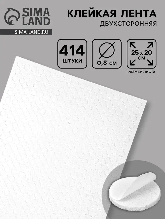 Клейкая лента двухсторонняя "Круглый белый" диаметр 0,8 см на листе 414 шт