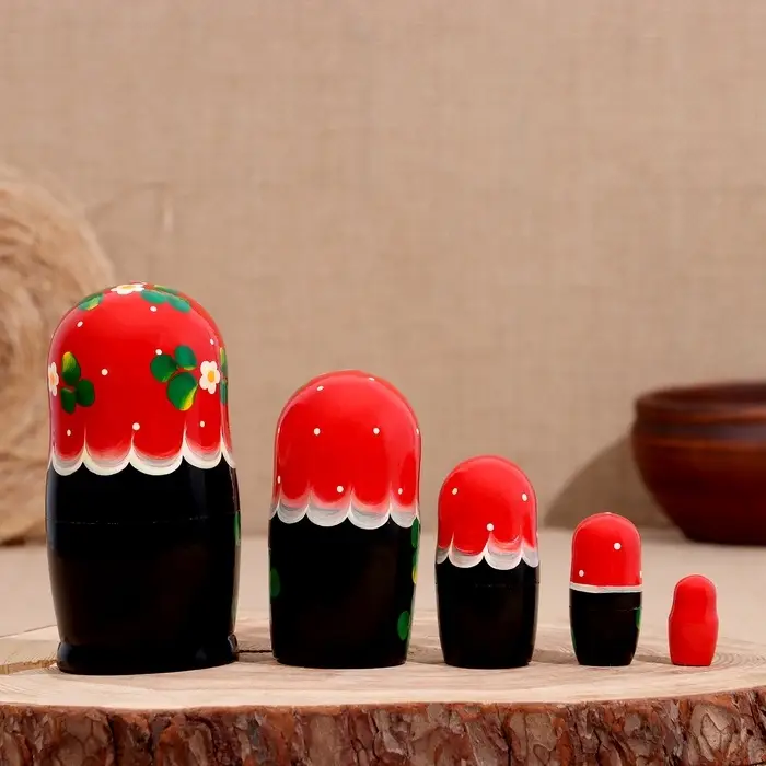 Матрёшка "Весела", красная голова, низ черный, 5-кукольная, 14 см