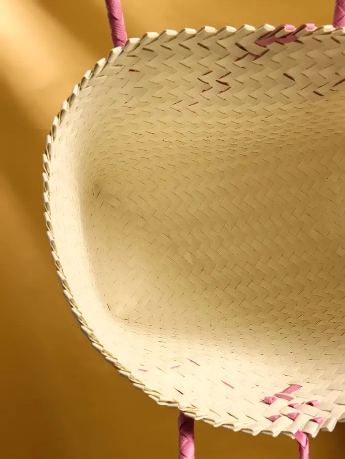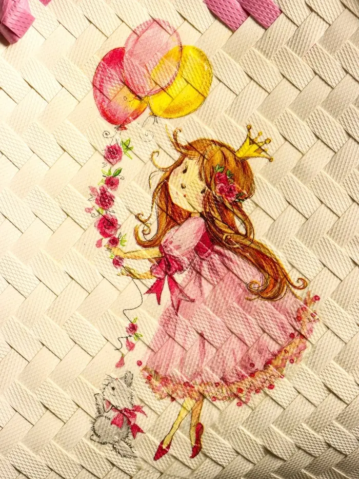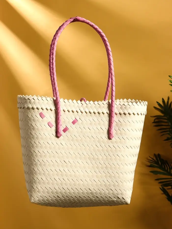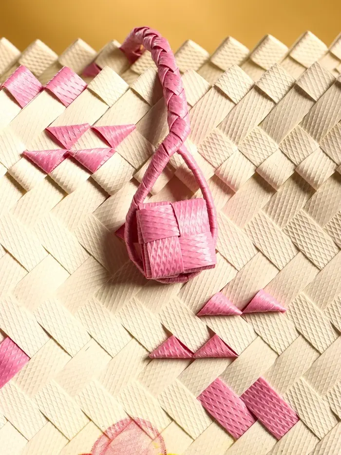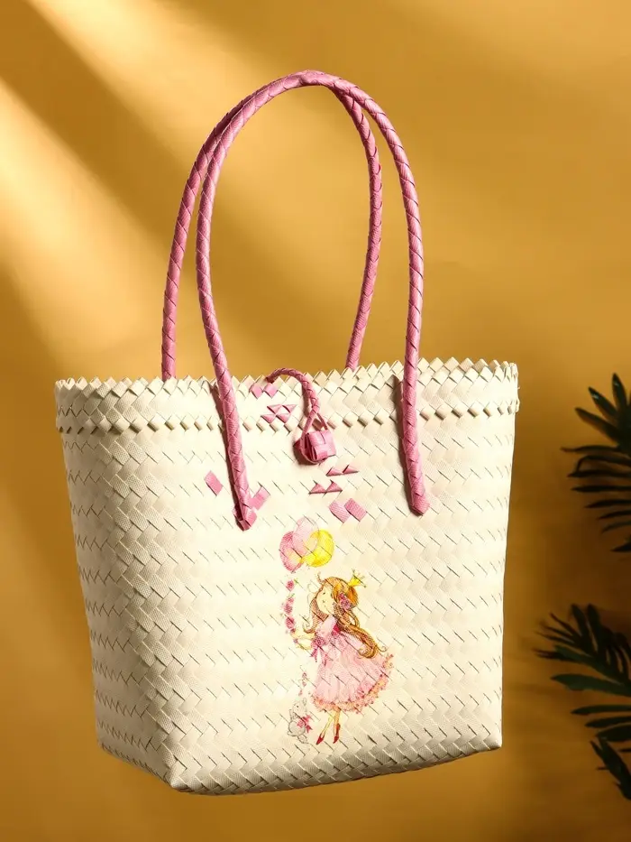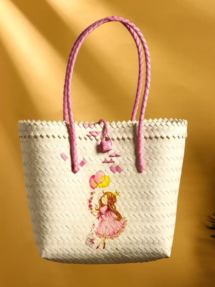 Сумка плетёная на застёжке «Девочка с букетом», 40×10×55 см, пластик, бело-розовая