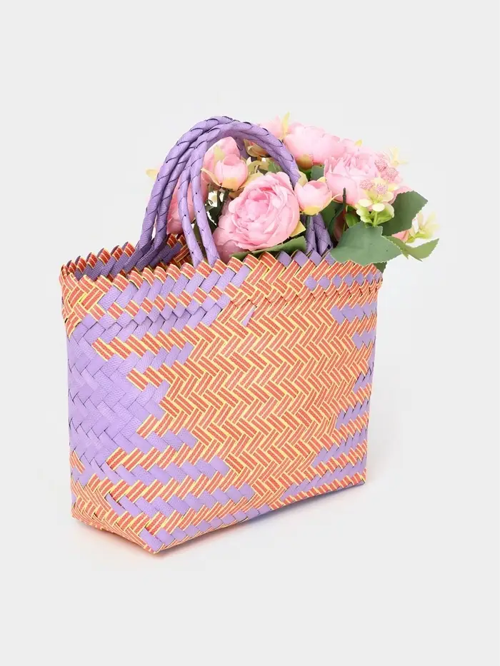 Сумка плетёная, 20×10×30 см, пластик, сиренево-жёлтая