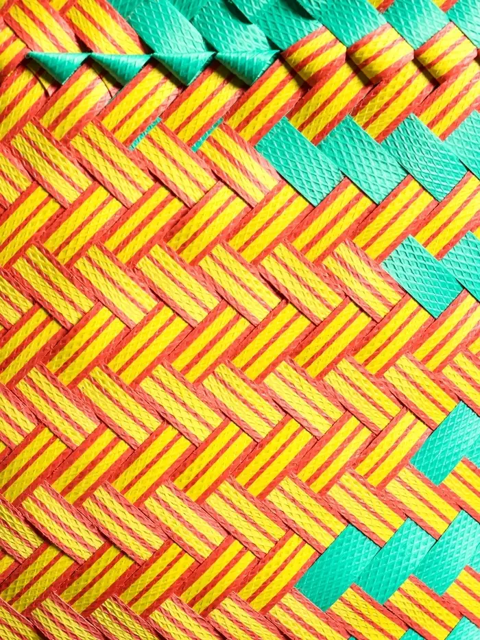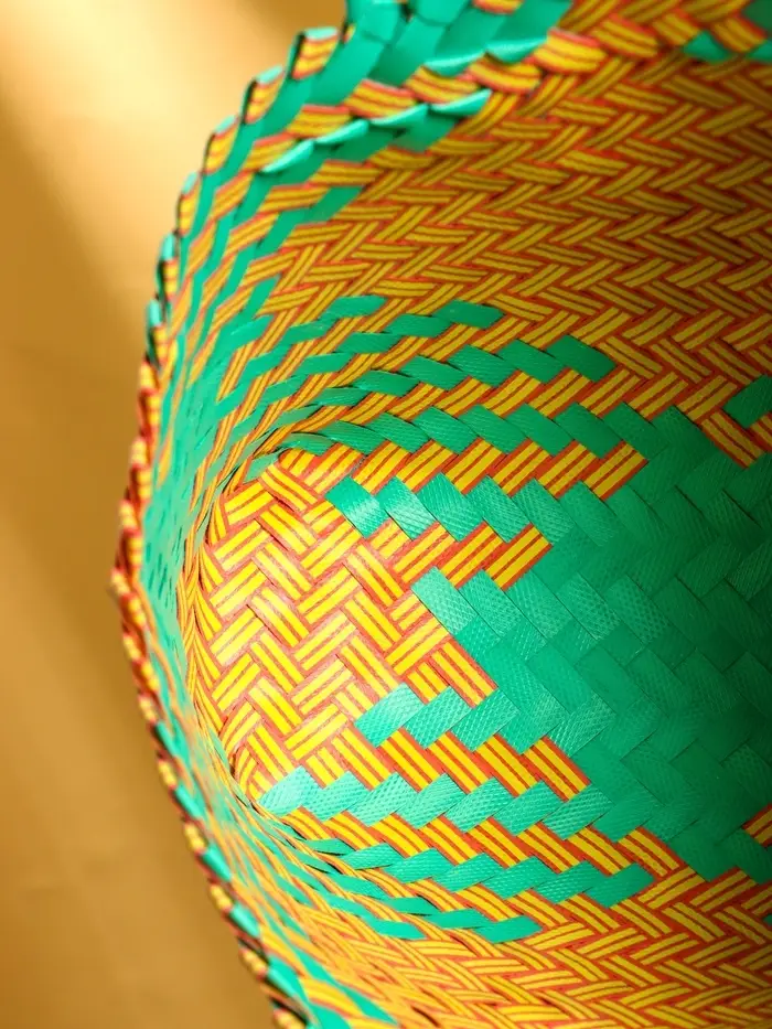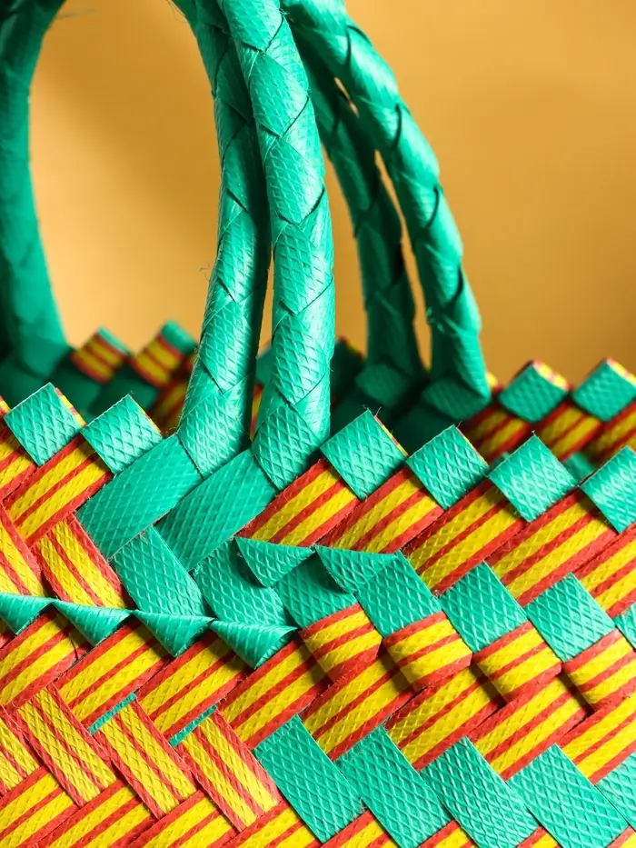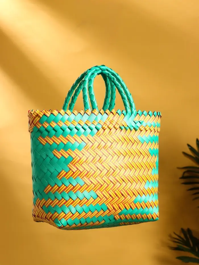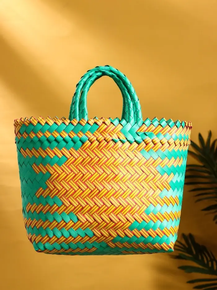 Сумка плетёная пластиковая 20х10х30 см, цв. бирюзовый-жёлтый
