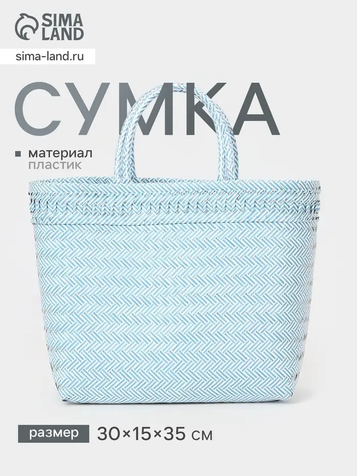 Сумка плетёная, 30×15×35 см, пластик, бело-голубая