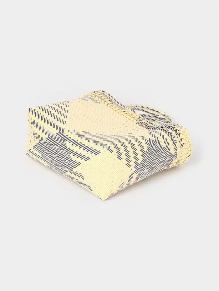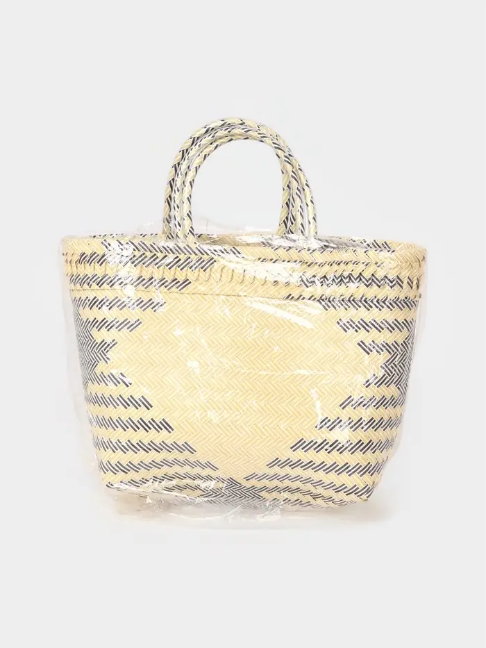 Плетёная сумка бежевого оттенка с чёрно-белыми вставками — сдержанная, но выразительная деталь летнего образа. Её средний размер и жёсткий каркас сохраняют форму в движении, а открытая конструкция и ношение в руке или на плече делают её удобной для прогулок, пикников или похода за покупками.