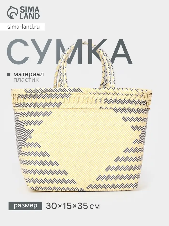 Сумка плетёная, 30×15×35 см, пластик, бежевая с чёрным