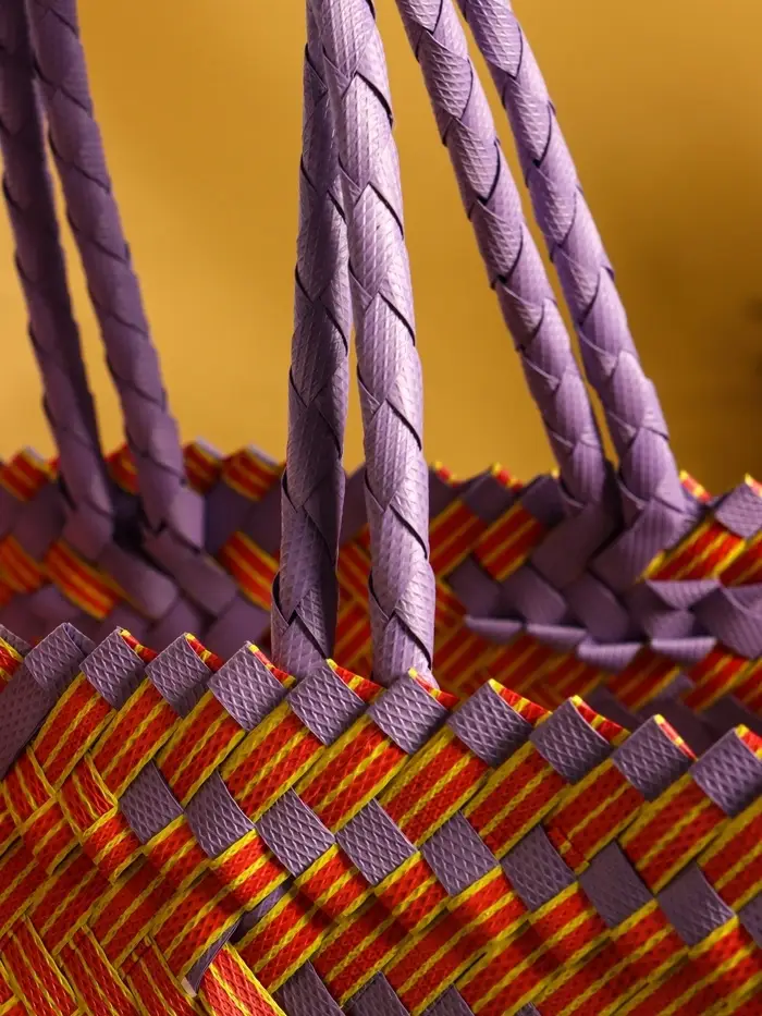 Сумка плетёная, 30×15×45 см, пластик, сиренево-жёлтая