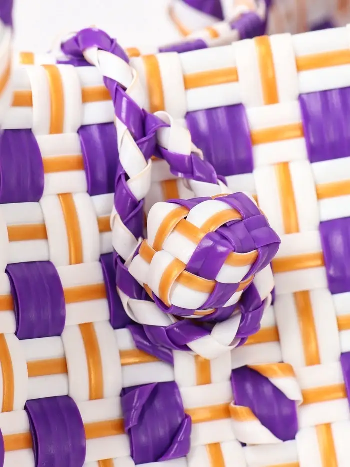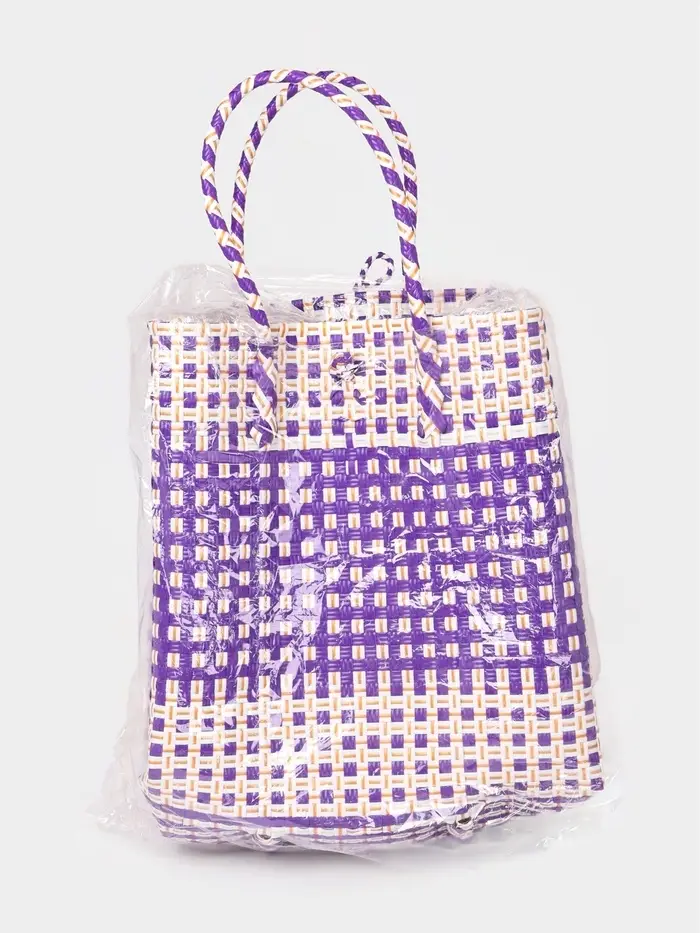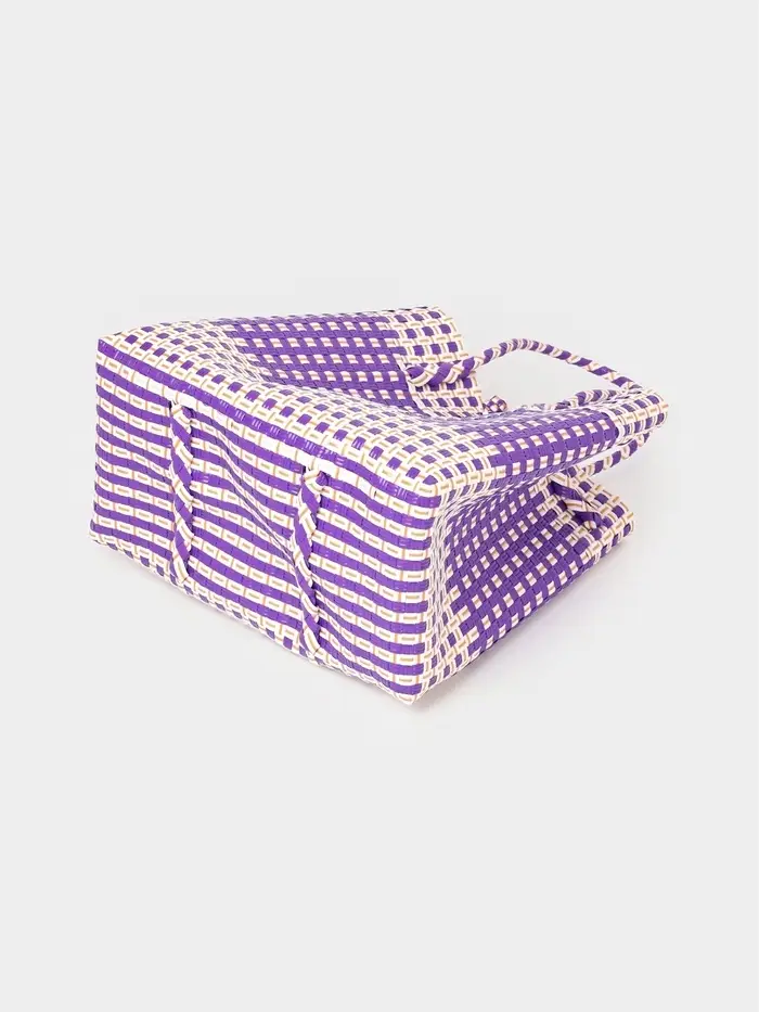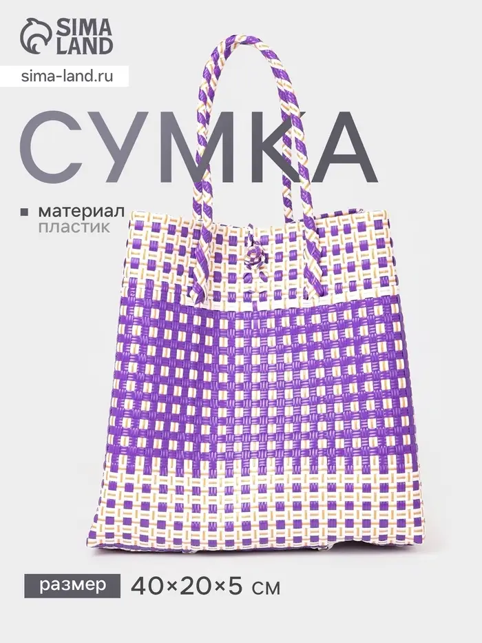 Сумка плетёная, 40×20×55 см, пластик, фиолетово-белая
