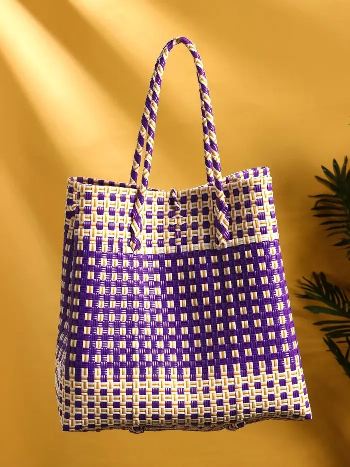 Сумка плетёная пластиковая 40х20х55 см, цв. фиолетово-белый