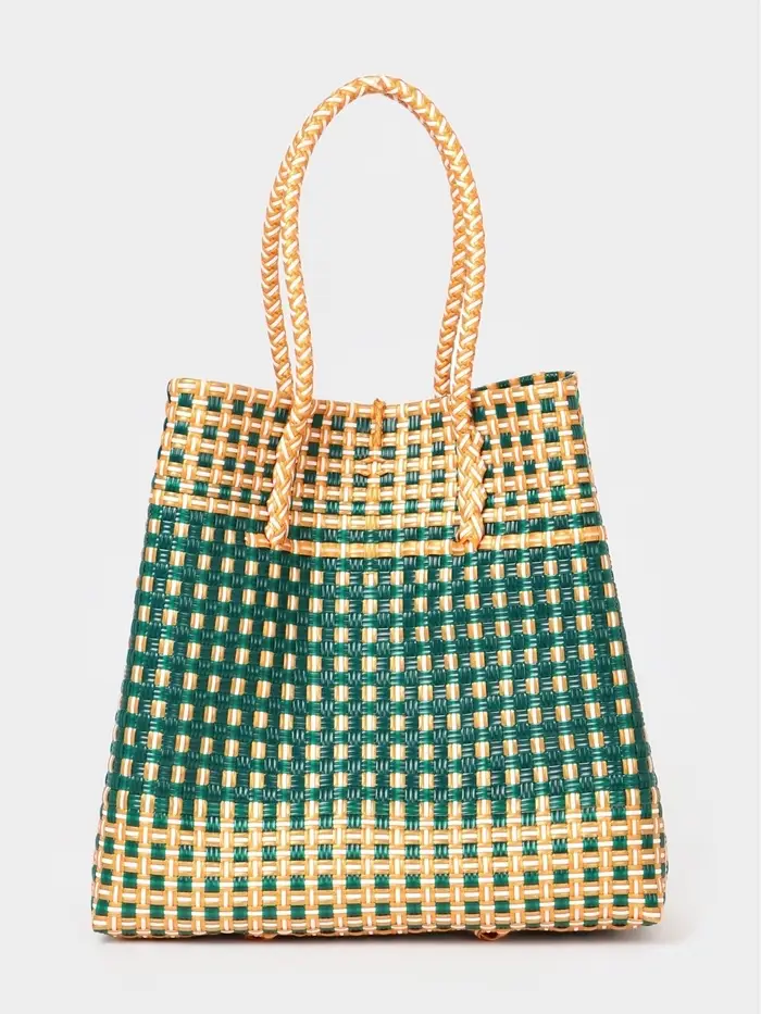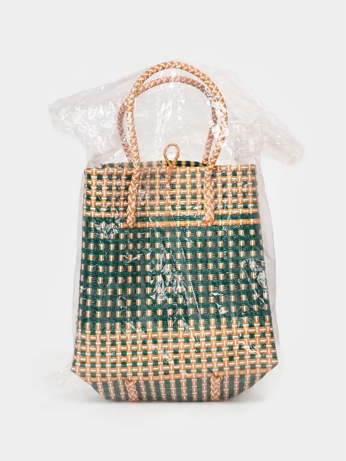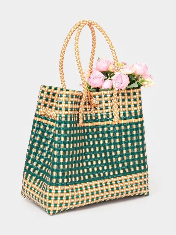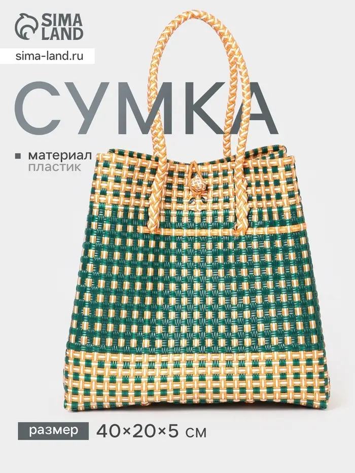 Сумка плетёная, 40×20×55 см, пластик, зелёно-бежевая