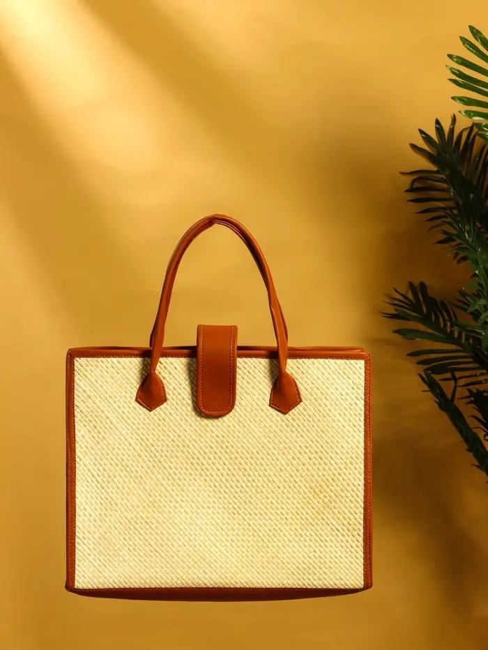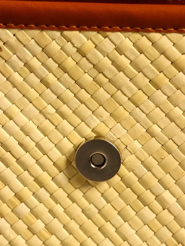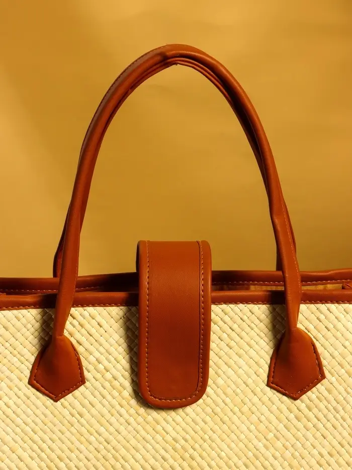 Сумка плетёная на застёжке из пандана 41х16х50 см, бежево-коричневый