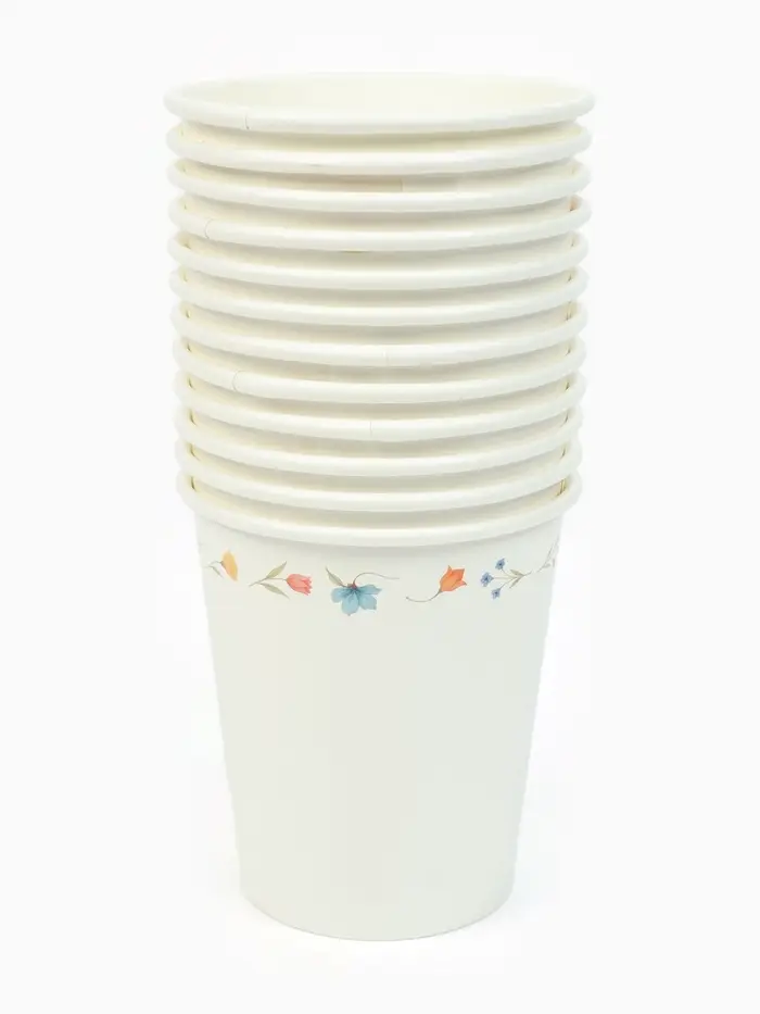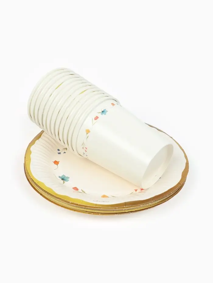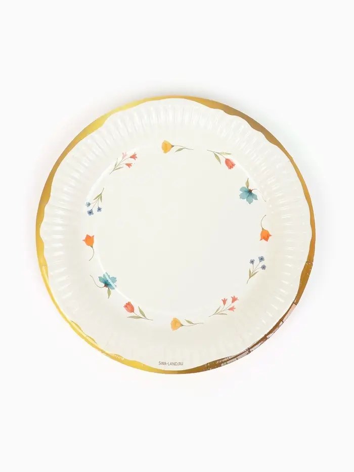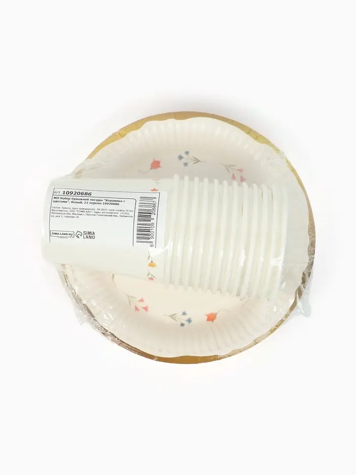 МП Набор бумажной посуды "Керамика с цветами", белый, 12 персон