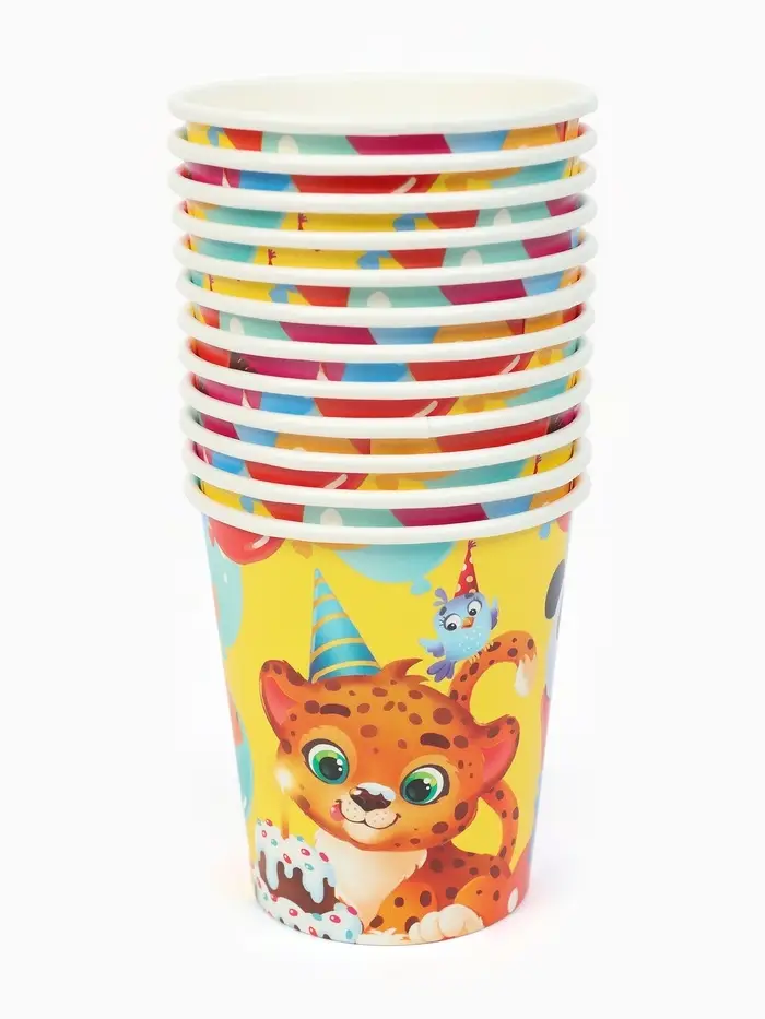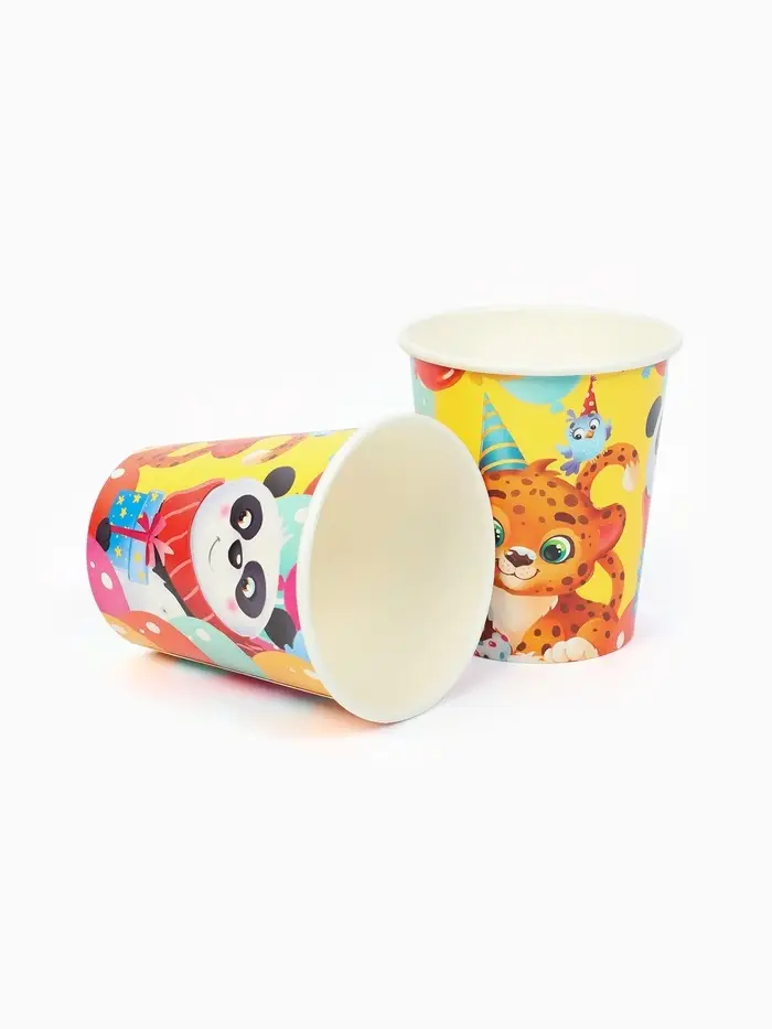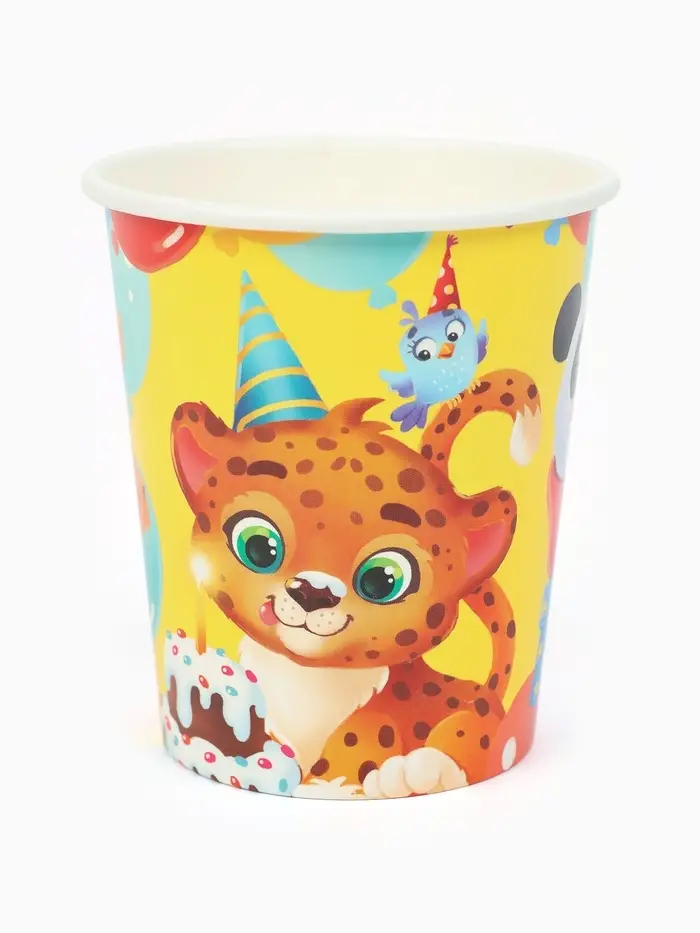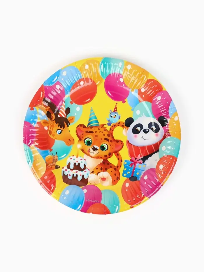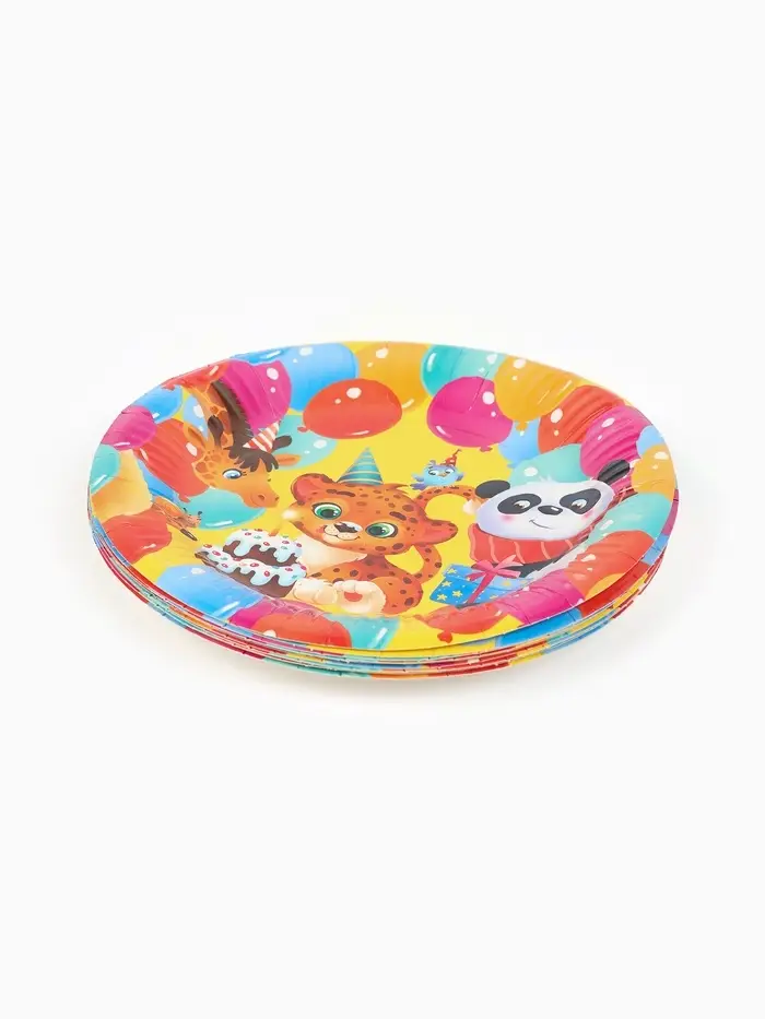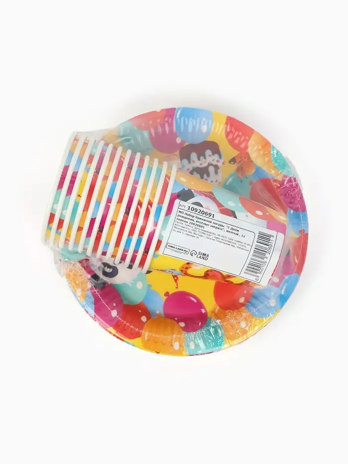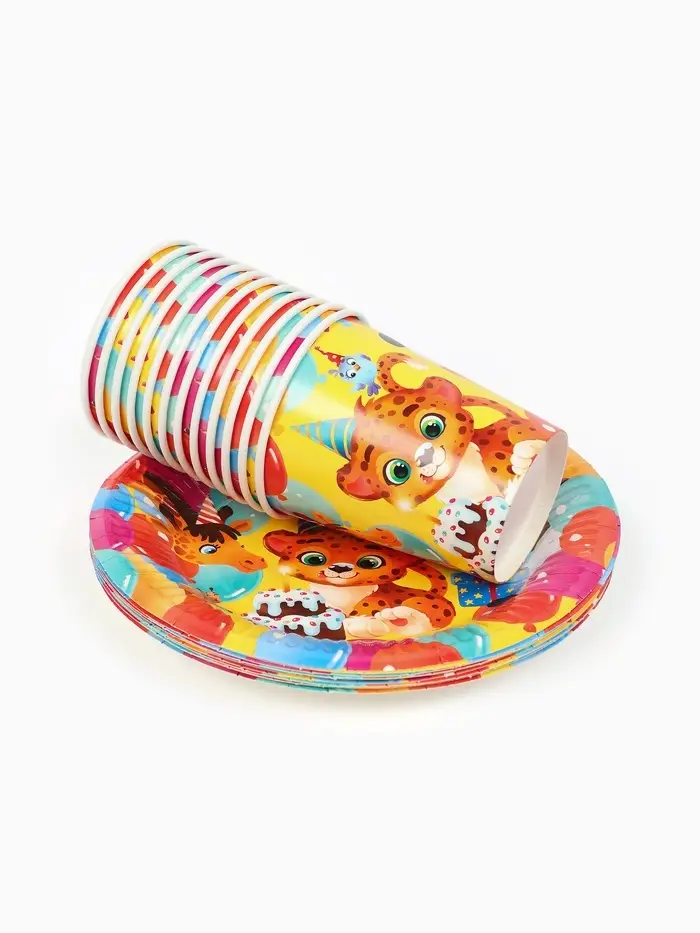 МП Набор бумажной посуды "С Днём рождения, весёлые зверята", желтый , 12 персон