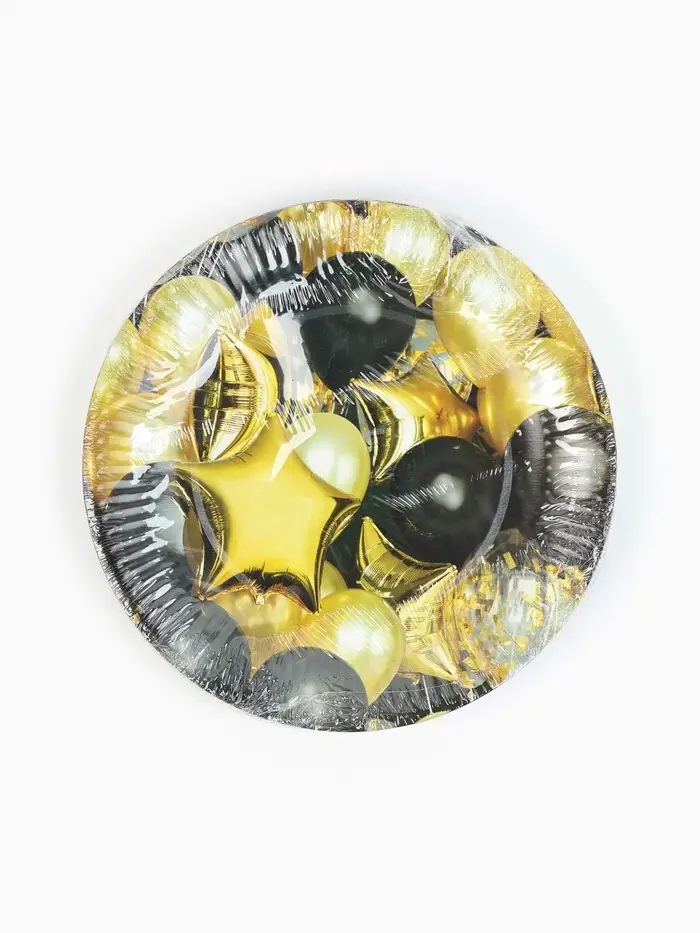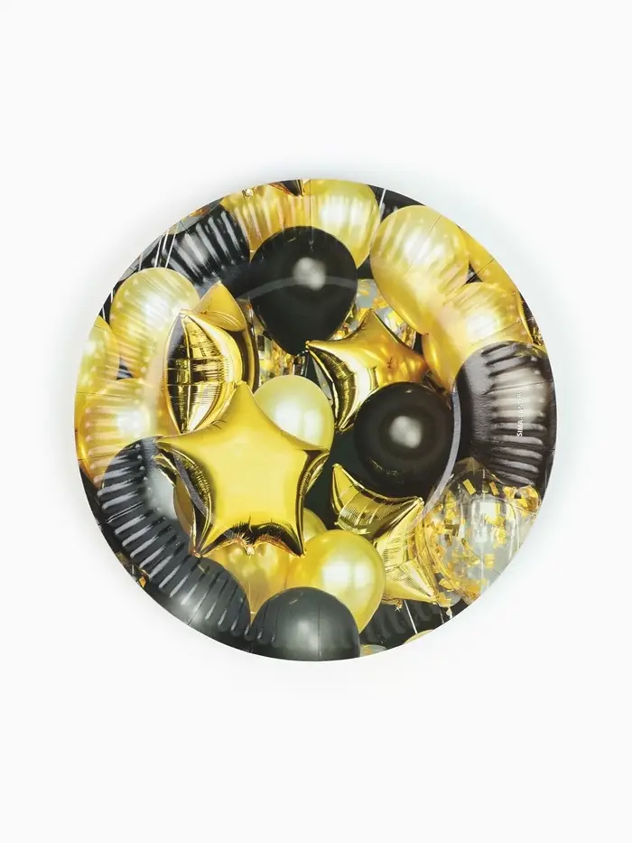 МП Тарелка одноразовая бумажная "Черное золото", шары, 18 см (10 шт.)