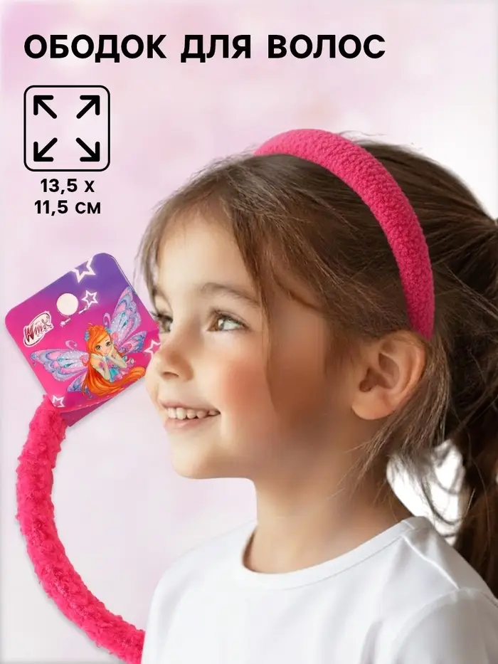 Ободок для волос плюшевый, розовый, Винкс