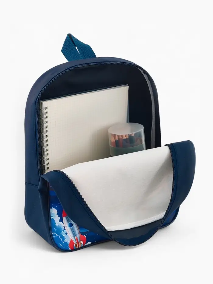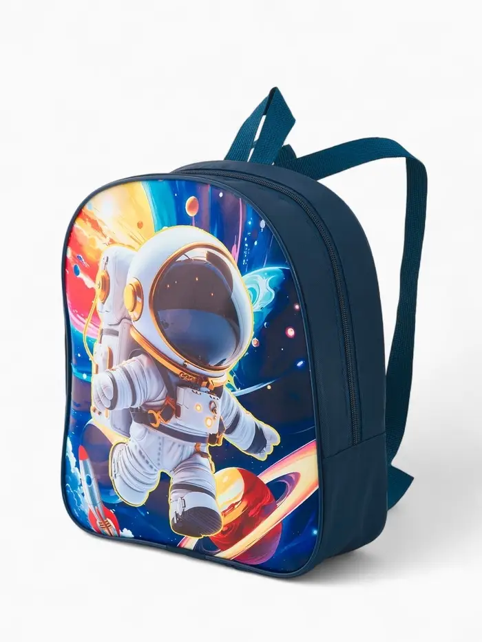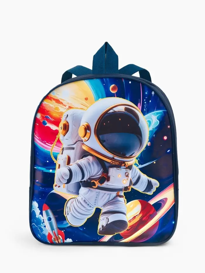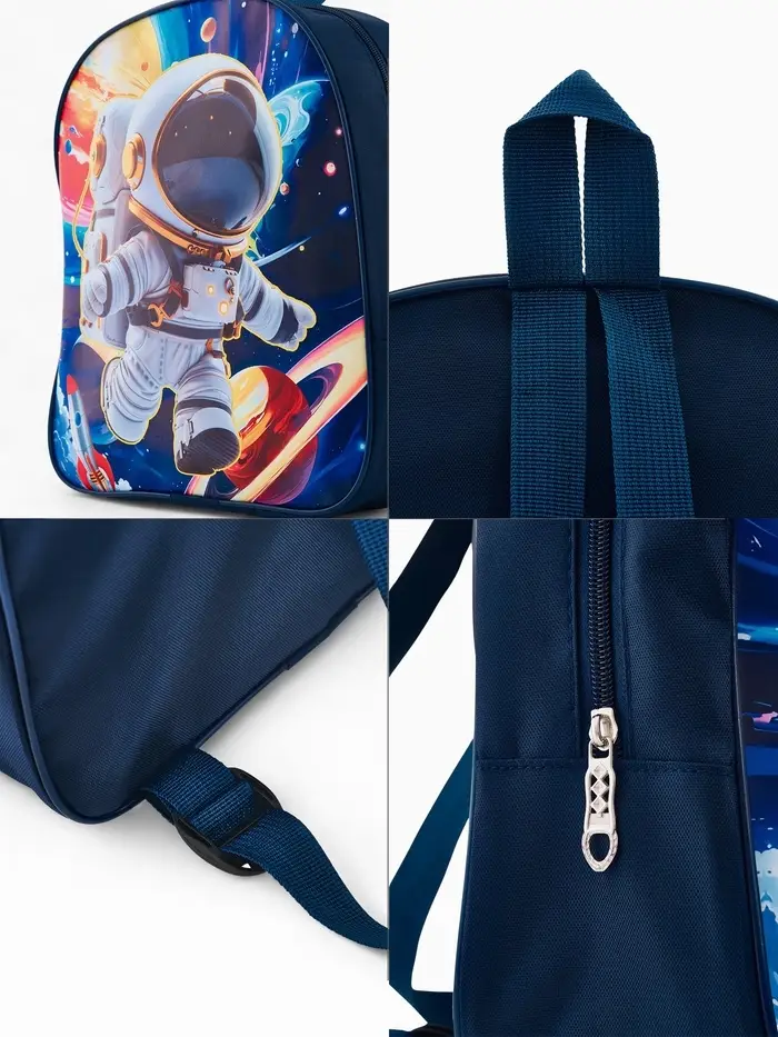 Рюкзак детский 27*10*30, отд на молнии, космос т-синий