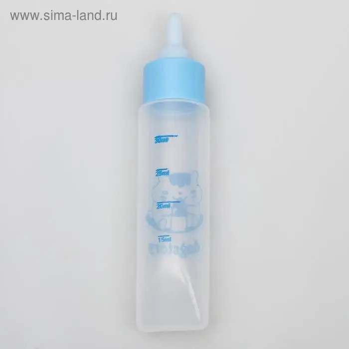 Бутылочка для вскармливания грызунов 30 мл с силиконовой соской (короткий носик), голубая