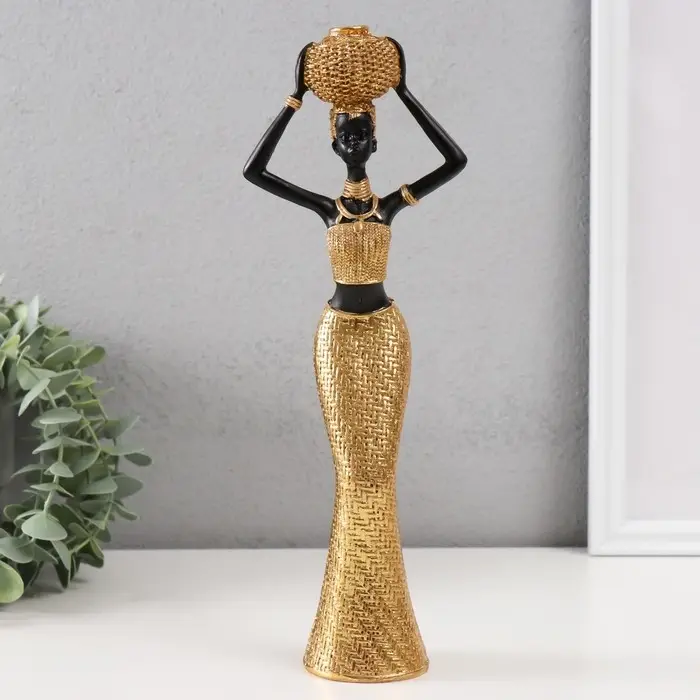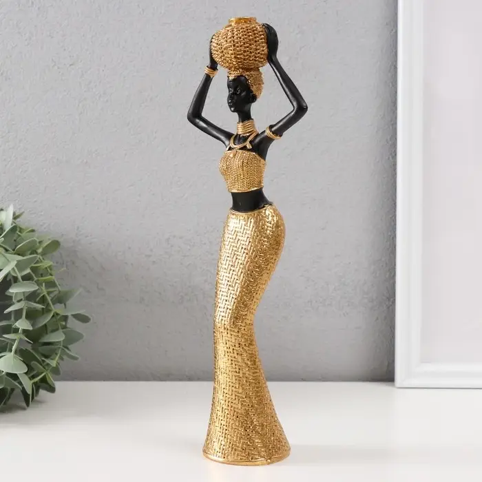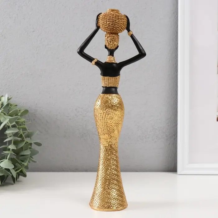 Сувенир полистоун "Африканка с плетёным круглым кувшином" золото 10х6х28 см