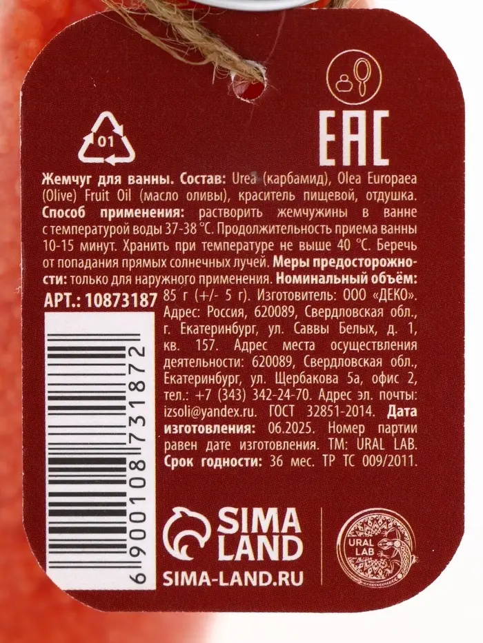 Жемчуг для ванны во флаконе, 85 г, аромат пряный глинтвейн, URAL LAB