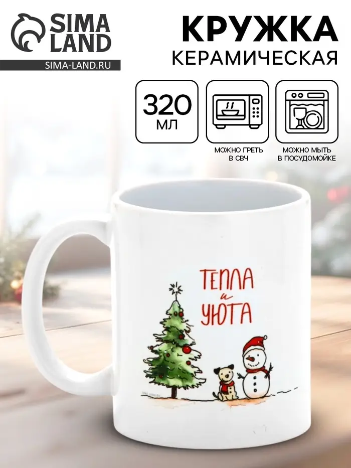 Кружка керамическая новогодняя «Тепла и уюта», 320 мл