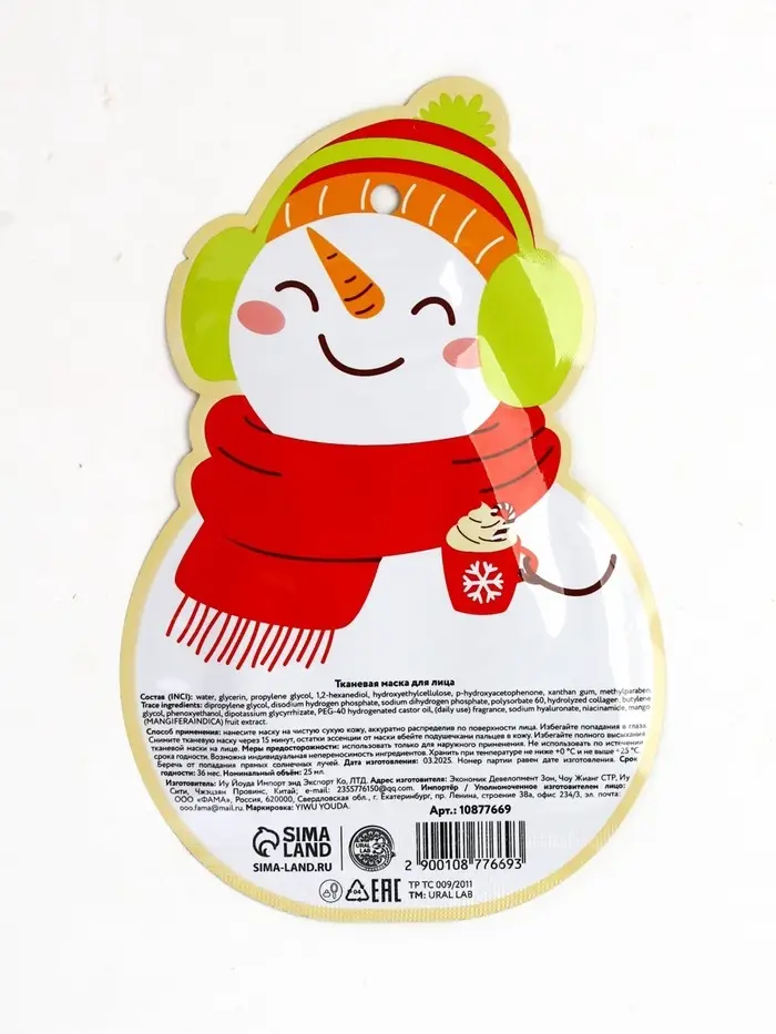 Тканевая маска для лица насыщающая, экстракт манго и гиалуроновая кислота, URAL LAB