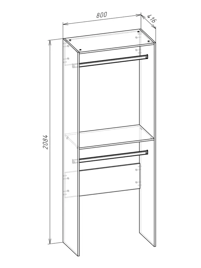 Вешалка модульной гардеробной системы «Модус», 2090×800×420 мм, цвет белый