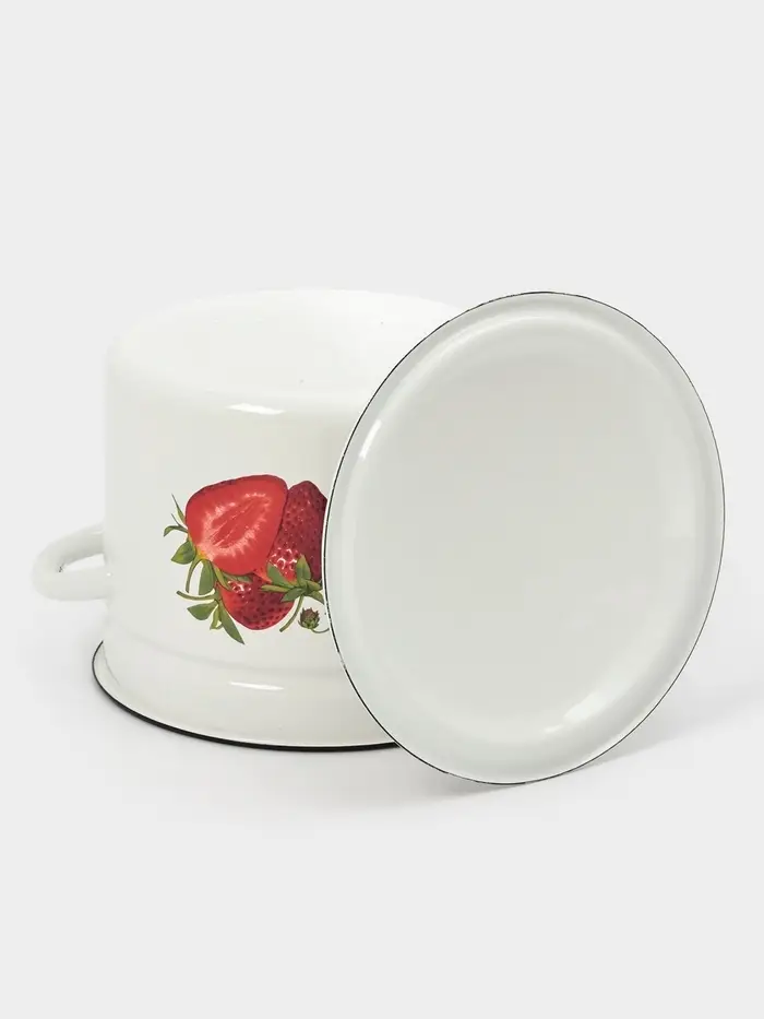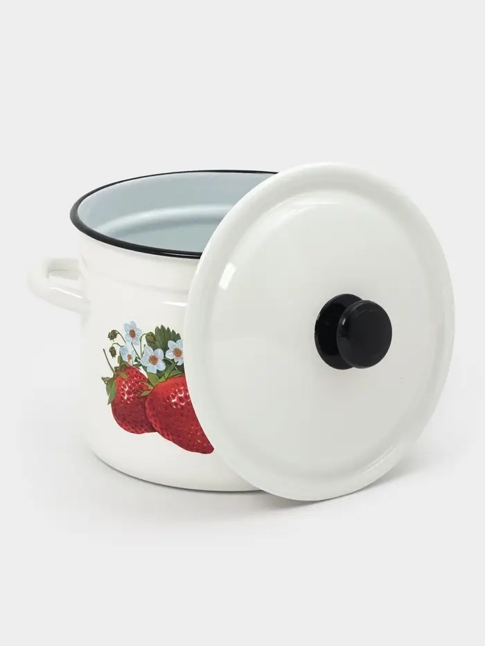 - Крышка из эмалированной стали: плотно прилегает, удерживает пар и не деформируется при нагреве. Моется вместе с кастрюлёй — без отдельных правил ухода.