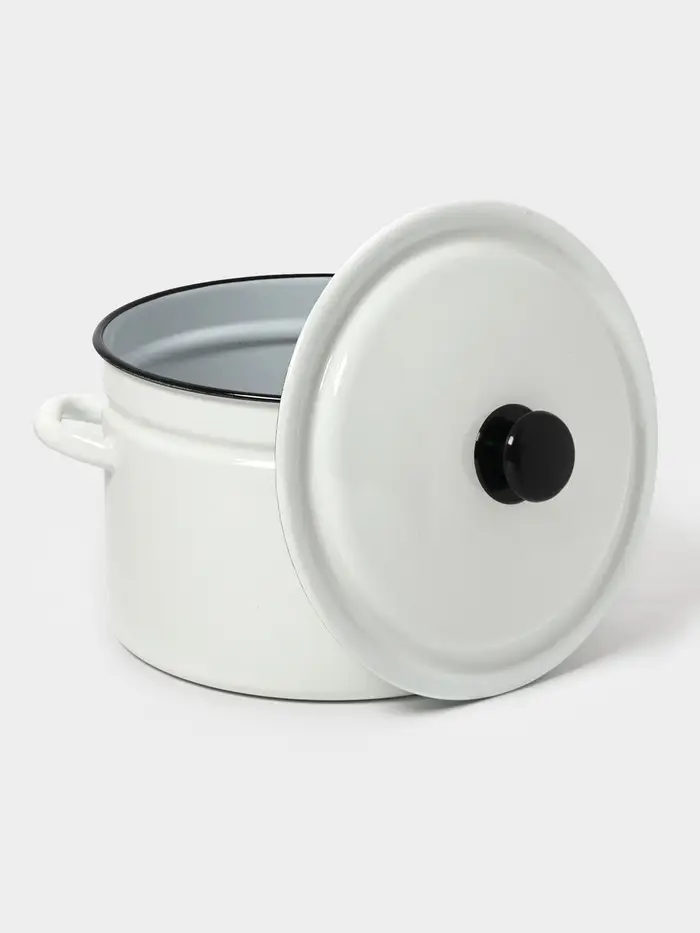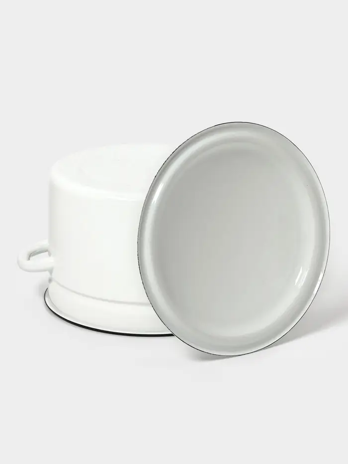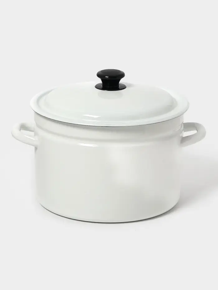 Кастрюля эмалированная, 8 л, d=26.4 см, с крышкой, без декора, белая