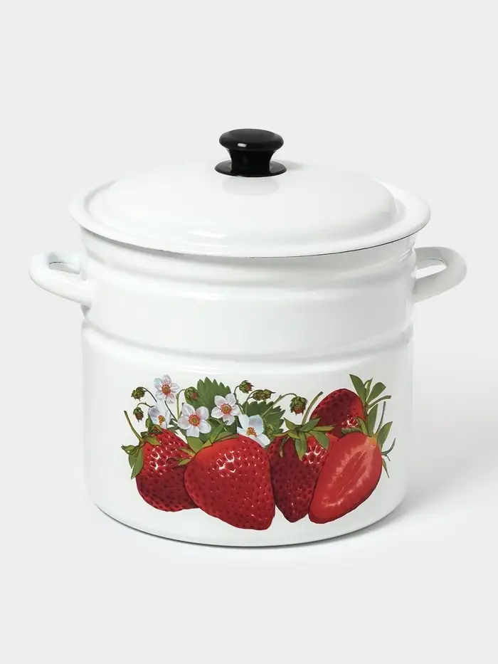 Простая форма — максимальная польза. Цилиндрическая эмалированная кастрюля 10 л с крышкой — это посуда для готовки без лишних изгибов и уступов. Белая эмаль, аккуратный рисунок и крышка из того же материала делают её удобной на плите, в холодильнике и при хранении.