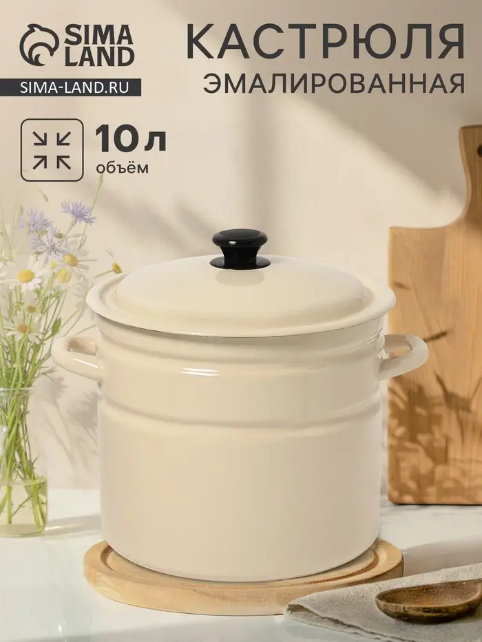 Цилиндрическая эмалированная кастрюля на 10 л с крышкой — это выбор для тех, кто варит суп на семью, готовит компоты из урожая или просто не любит делать всё по два раза.