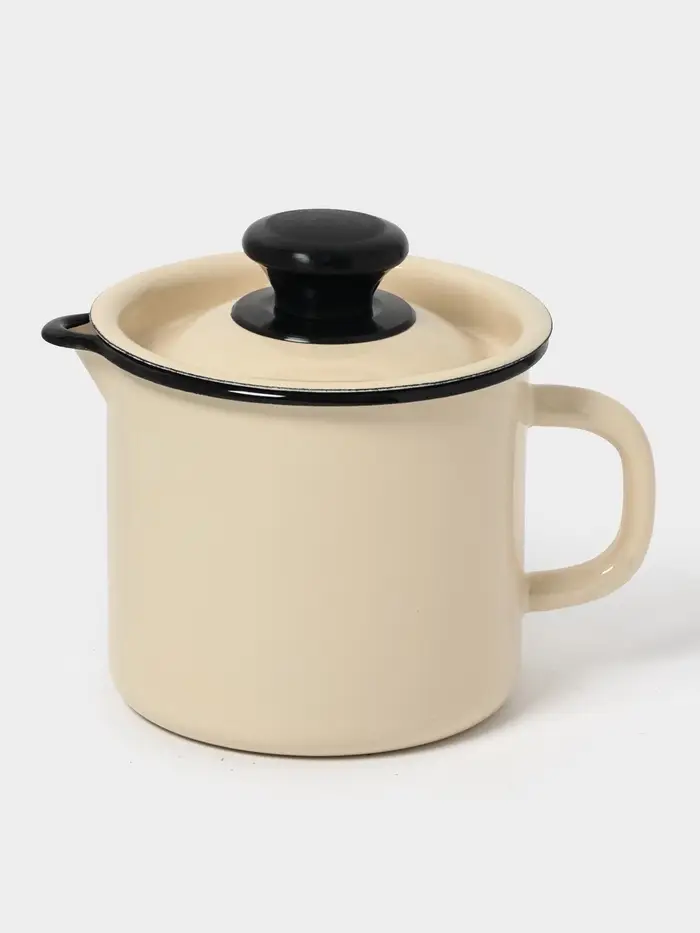 Кружка эмалированная, 1 л, с крышкой и носиком, без декора, слоновая кость