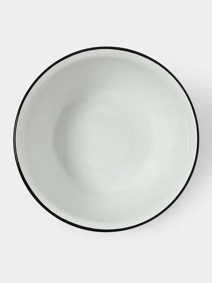 Эмалированная миска объеёмом 4 литра – это вместительная посуда для сыпучих продуктов, смешивания ингредиентов или сервировки блюд. Миска впишется в интерьер благодаря своему эстетичному дизанйу.