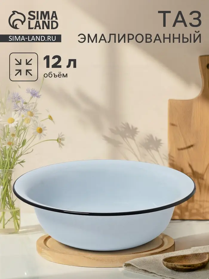 Надежный помощник в доме и на даче! Эмалированный таз на 12 литров — практичная и долговечная емкость для ежедневных хозяйственных задач.