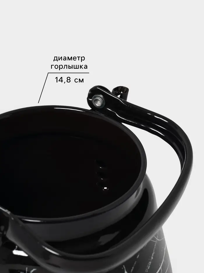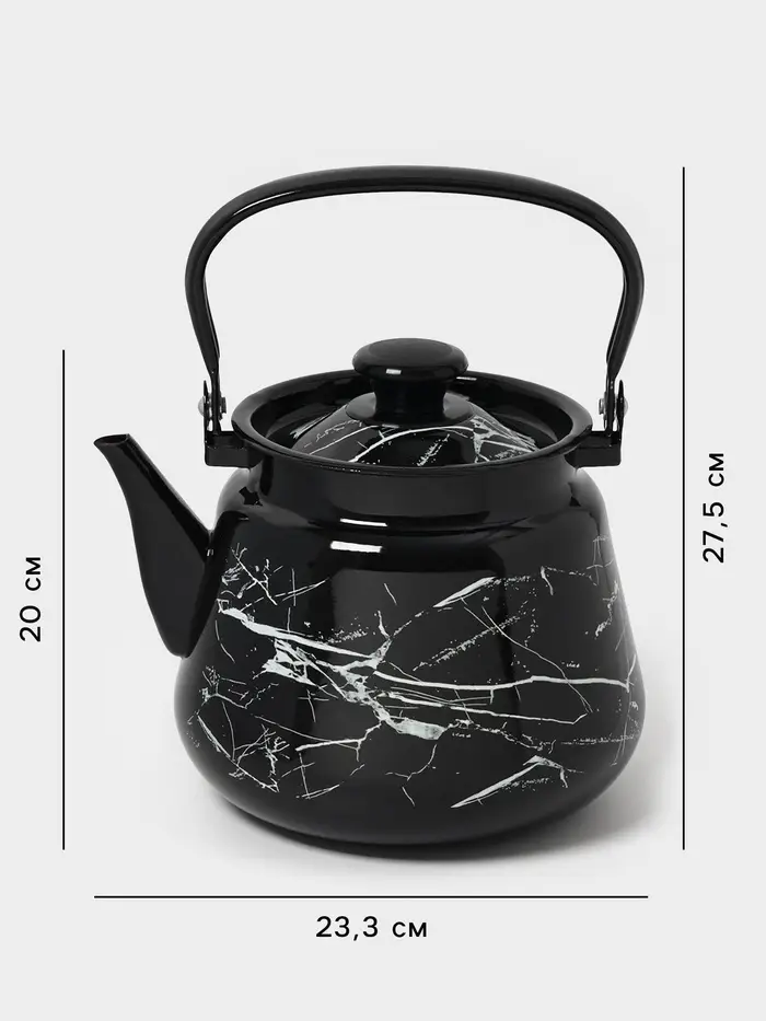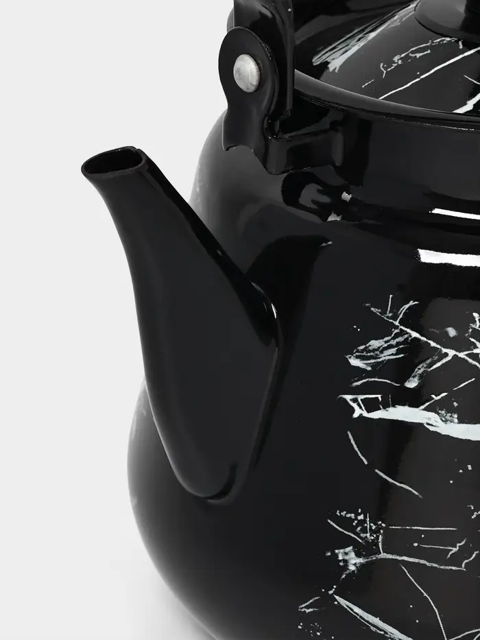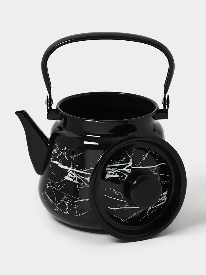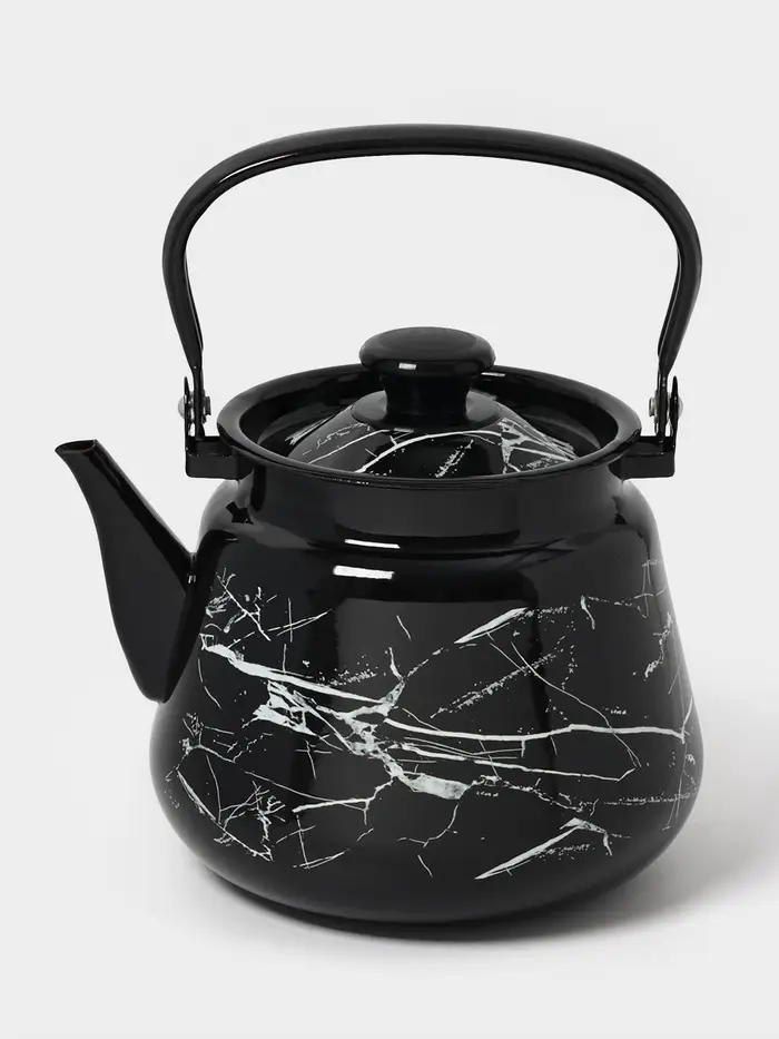 Чайник эмалированный «Чёрный мрамор», 3.5 л, металлическая ручка