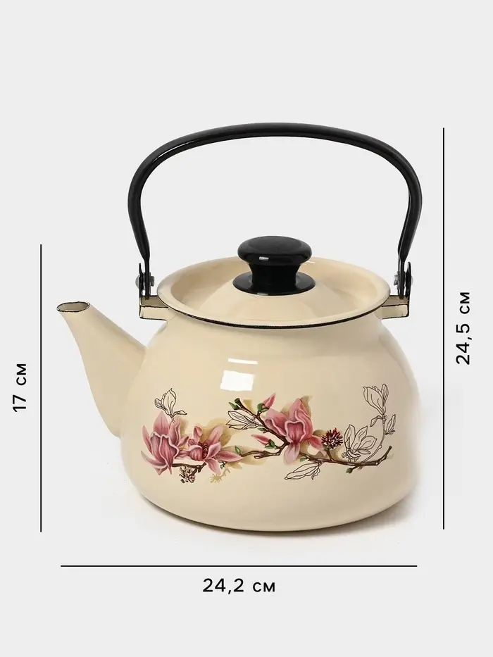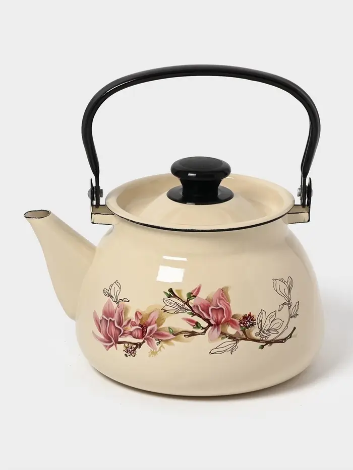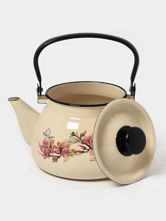 Чайник эмалированный «Магнолия», 3 л, металлическая ручка, слоновой кости