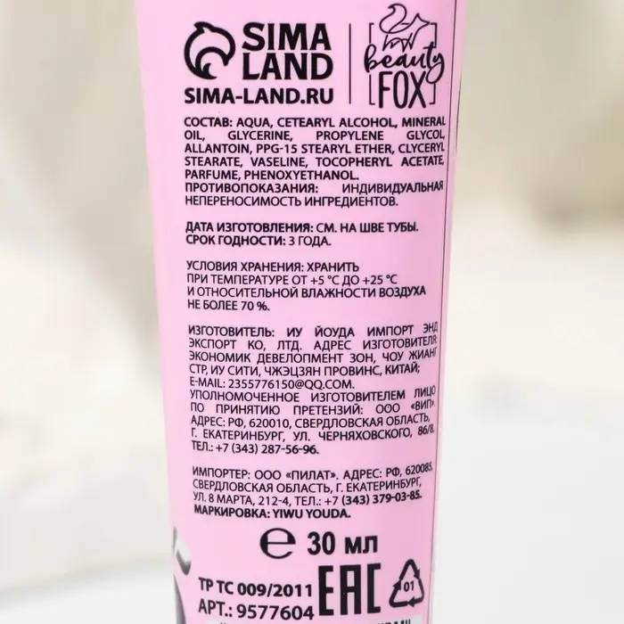 Крем для рук, тонизирование, 30 мл, аромат смородины, BEAUTY FOOD