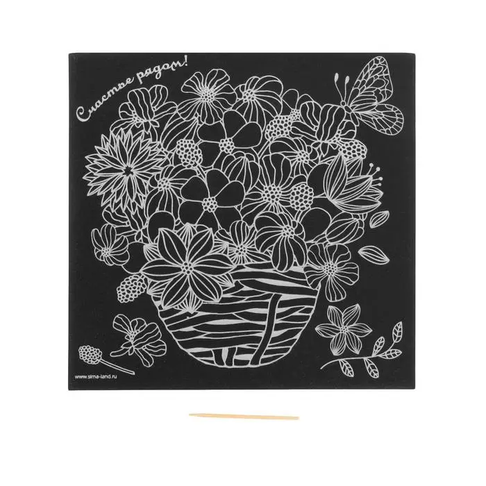 Чтобы создать невероятно красивую гравюру, достаточно процарапать намеченные контуры рисунка специальным инструментом — штихелем. И дети, и взрослые будут с удовольствием соскребать по обозначенным линиям верхний слой картины, под которым находится сверкающая фольга.