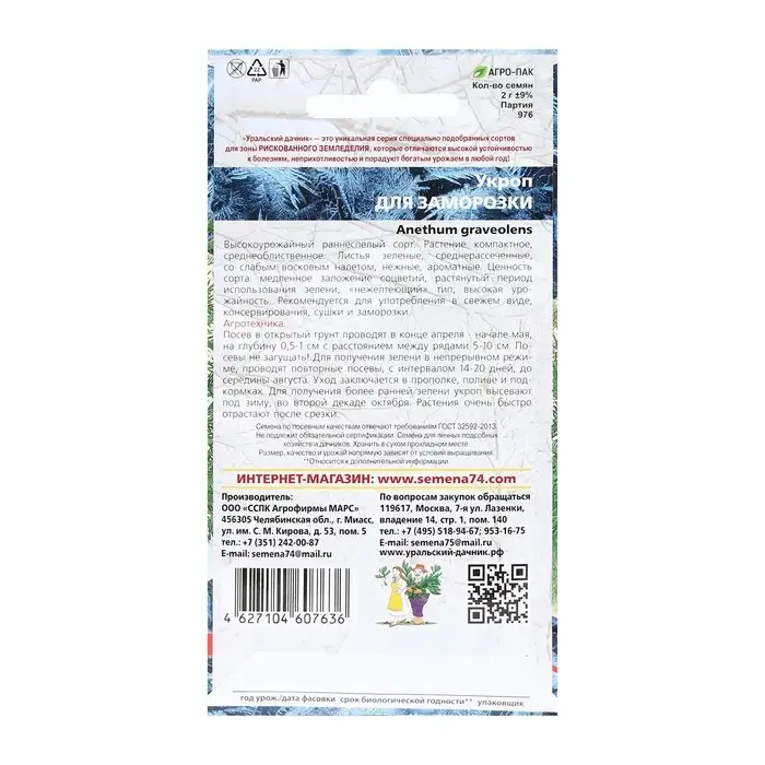 Семена Укроп "Мамонт", Сем. Алт, ц/п, 2 г