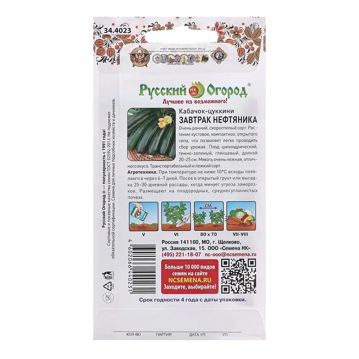 Семена Кабачок цуккини "Завтрак нефтяника", ц/п, 1,5 г