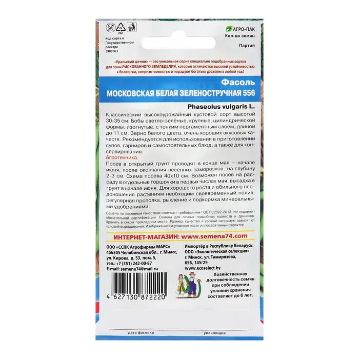 Семена Фасоль "Московская белая зеленостручная 556", 2 г