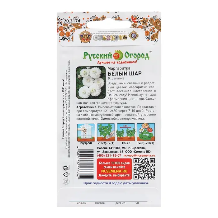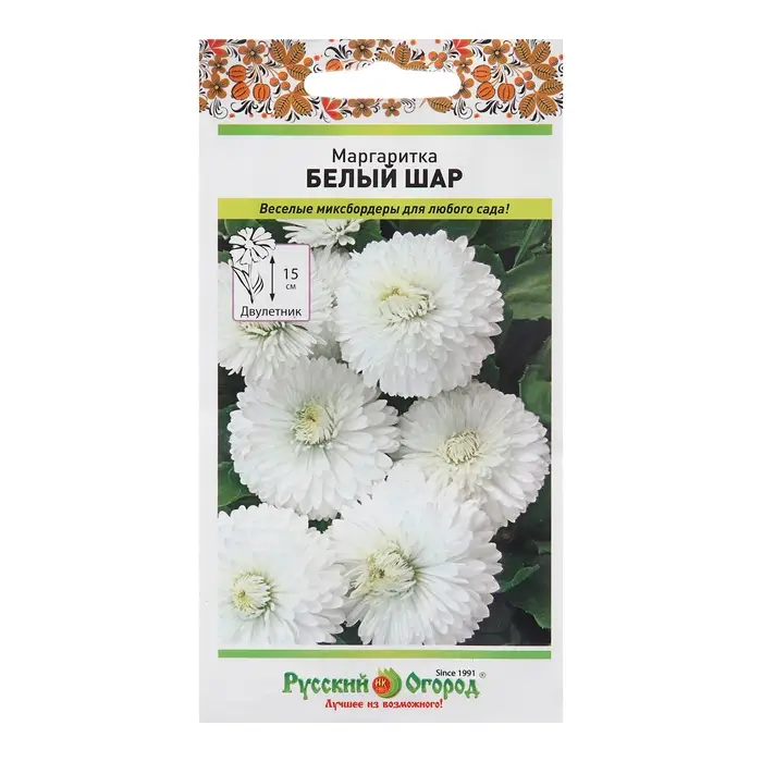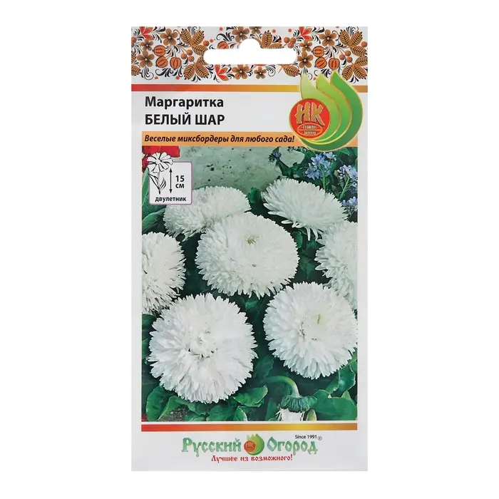Семена цветов Маргаритка "Белый шар", 0,05 г