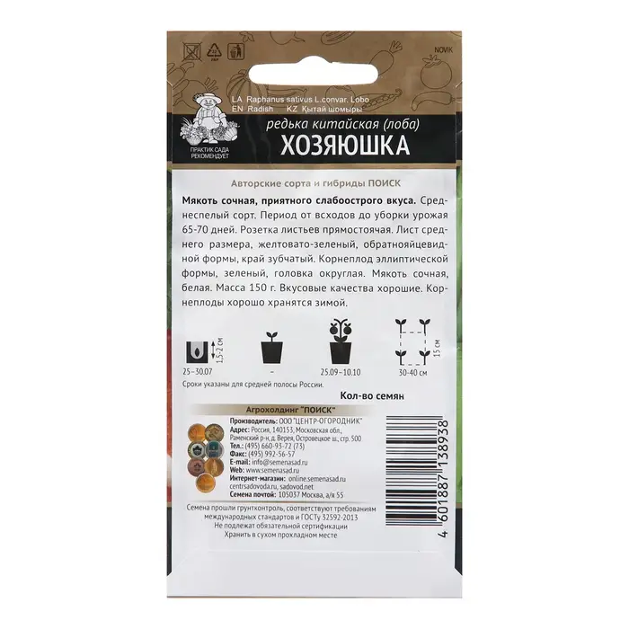 Семена Редька "Зимняя круглая чёрная", среднеспелая, 1 г