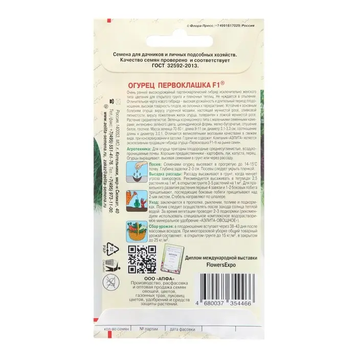 Семена Огурец "Шопа", Сем. Алт, ц/п, 5 шт.