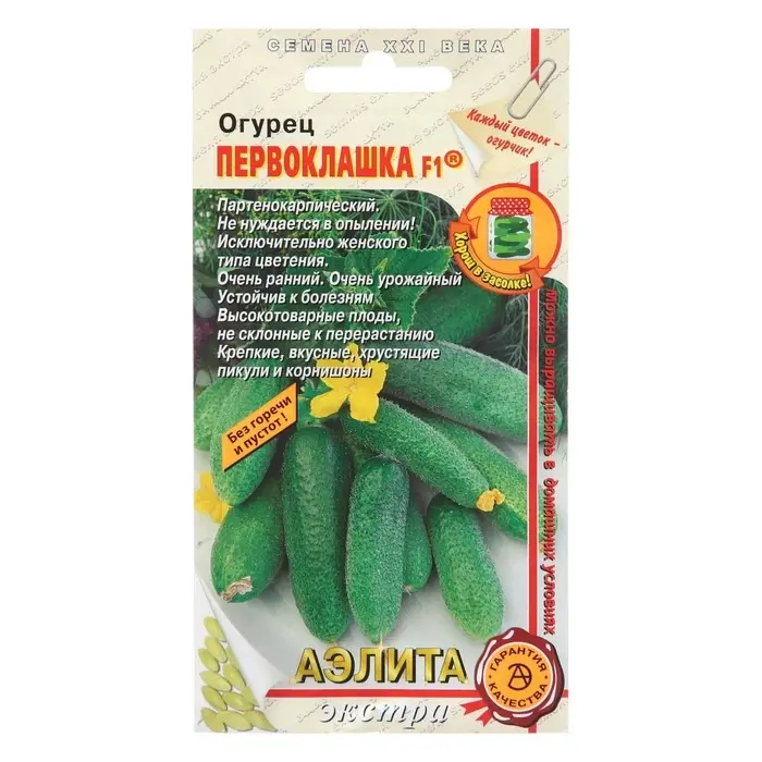 Очень ранний самоопыляемый партенокарпический гибрид исключительно женского типа цветения для открытого грунта, пленочных и стеклянных теплиц.Отличительная черта нового гибрида - высокая урожайность и длительный период плодоношения, высокая товарность плодов, не склонных к перерастанию.Устойчив к основным болезням огурца: вирусу огуречной мозаики, настоящей мучнистой росе, оливковой пятнистости, вирусу пожелтения жилок огурца, толерантен к ложной мучнистой росе.Растение среднеплетистое.Зеленцы корнишонного типа с маленькими семенными камерами, интенсивно зелёного цвета, цилиндрической формы, мелко-бугорчатые, опушение белое, плотное.Масса зеленца 70-80 г, длина 9-11 см, диаметр 3,1-3,3 см, соотношение длины к диаметру 3,0:1.Отличается великолепными вкусовыми качествами в свежем виде, при консервировании и засолке. Горечи не содержит.
