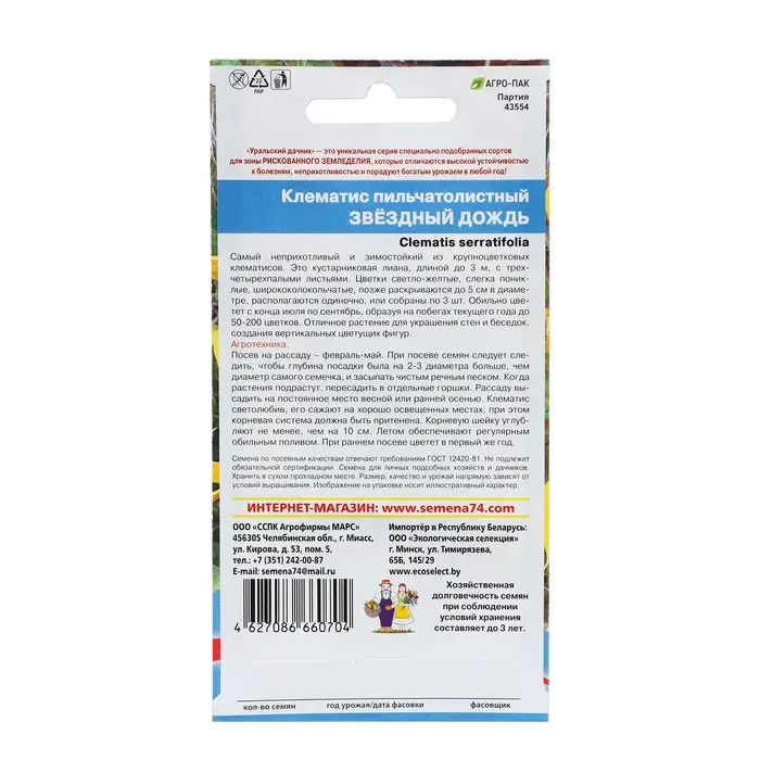 Семена Цветов Клематис пильчатолистный "Звездный дождь" ,12 шт ,