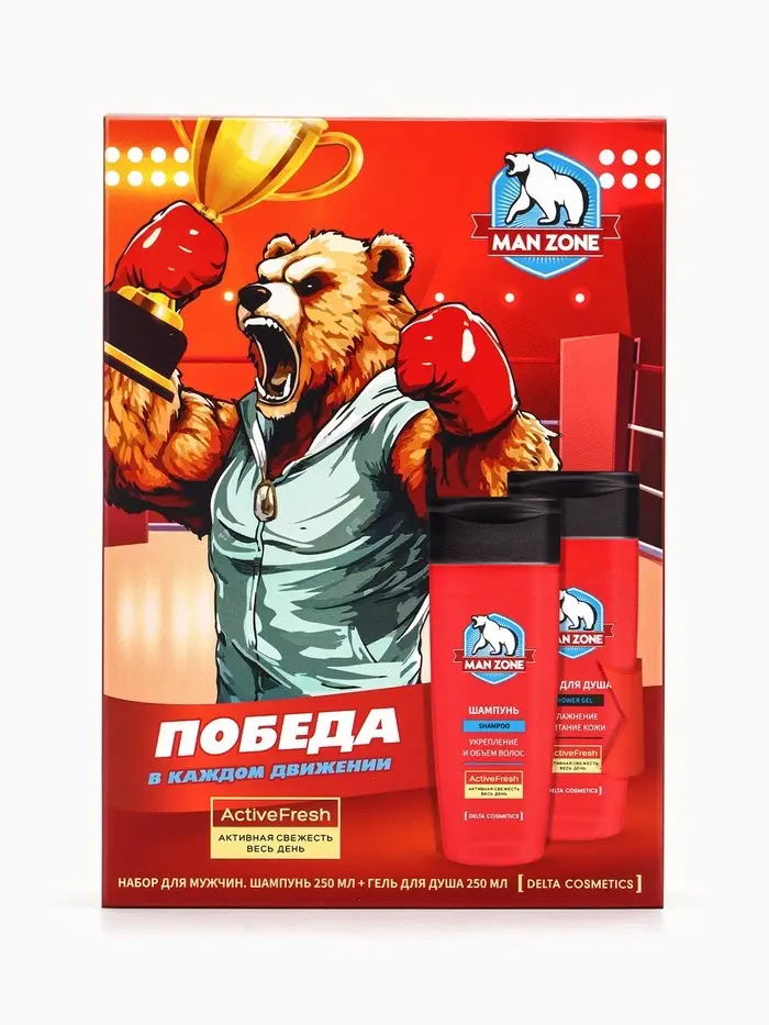 Подарочный набор мужской MAN ZONE ACTIVE FRESH: гель для душа 250 мл + шампунь 250 мл