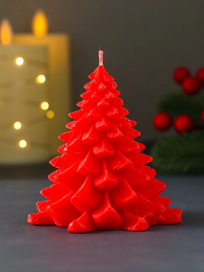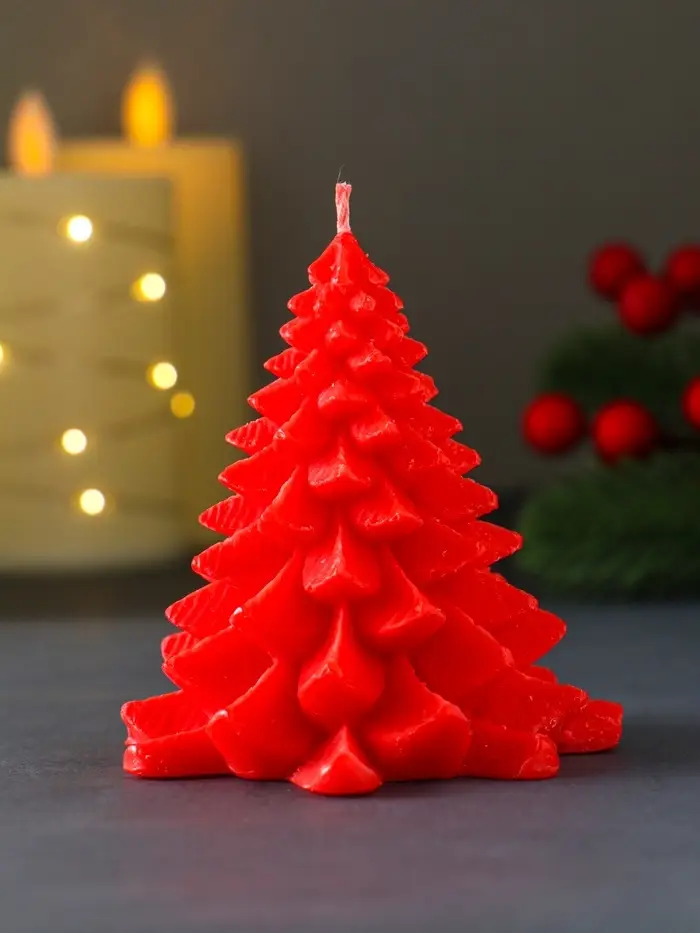 Свеча "Ель пушистая" 80х80х90 мм, красная