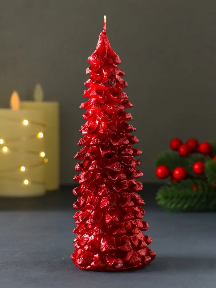 Свеча "Ель большая" 160х60 мм лак, красная