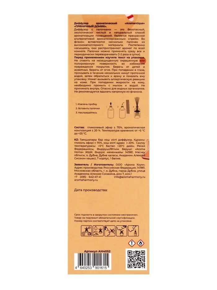 Погрузитесь в чарующую сказку зимних праздников с ароматическим диффузором Aromantique «Пряничный домик» — тёплым и соблазнительным ароматом, наполненным уютом, нежностью и атмосферой домашнего счастья. Это аромат, который переносит в момент, когда за окном кружится снег, а в доме пахнет сладкой выпечкой, свежим деревом и теплом камина.